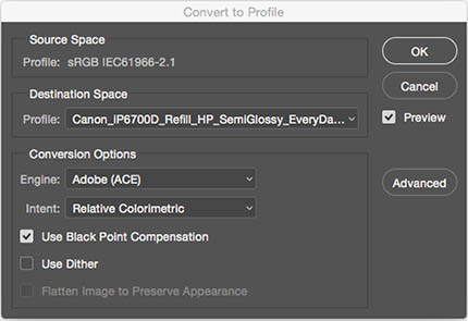 Per farlo, si utilizza l’intento di rendering colorimetrico relativo con compensazione del punto nero.